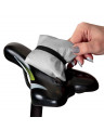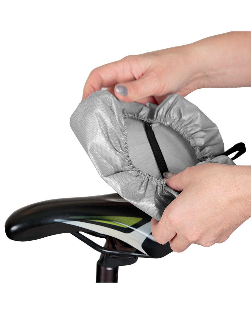 Tartós és vízálló huzat bicikliülésre, mely védi az ülést a különféle csapadékoktól, illetve a napsugarak káros hatásaitól (UV-sugárzás). Rögzítése: A huzatot a képen bemutatott módon, tiszta ülésre tegye fel. Miután leveszi, az összehajtott huzat összeköthető a huzatba bevarrt kötéllel.