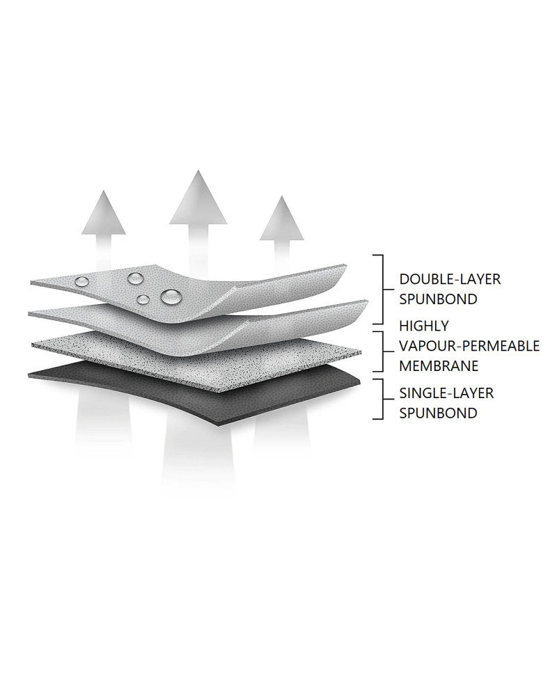 még erős eső esetén is vízálló, ugyanakkor páraáteresztő, így elvezeti a nedvességet a huzat alól