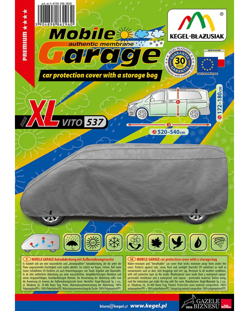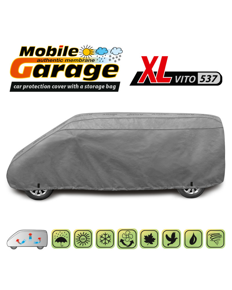 A magas minőségű, autókra való MOBILE GARAGE huzatok vízhatlanok, de páraáteresztőek. A huzat négyrétegű, vízhatlan, páraáteresztő membránból és nehezen vizesedő, de magas páraáteresztő képességgel rendelkező anyagokból készült, majdnem teljesen szoros, de ugyanakkor elvezeti a huzat alatt összegyűlő nedvet. Az egész kocsit, az alsó részével együtt védi a kedvezőtlen környezeti hatásoktól. A huzatok UV-sugárzás ellenállóak. A rögzítésük kocsit körbefogó zsinórral történik, megfelelően összekötve biztosítják a kocsit erős szél esetében is. Mivel az ajánlatunkban több alakban és méretben találhatóak, különböző kocsikhoz illenek. A 30 hónapra szóló garanciának köszönhetően biztos lehet abban, hogy a legmagasabb minőségű terméket vásárolja.