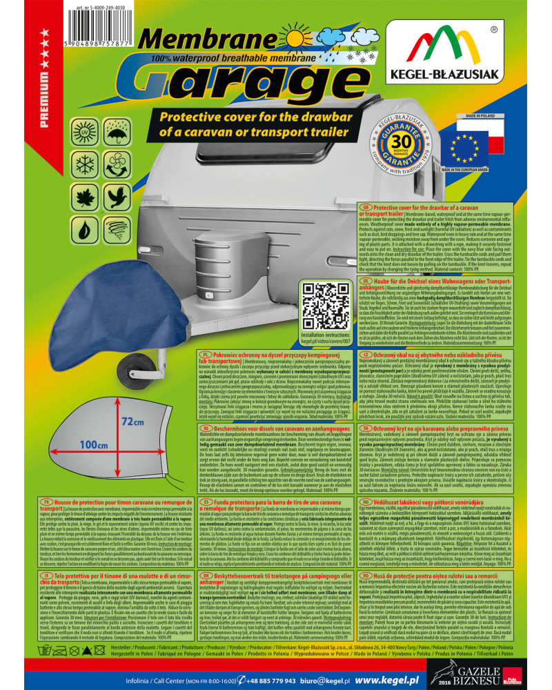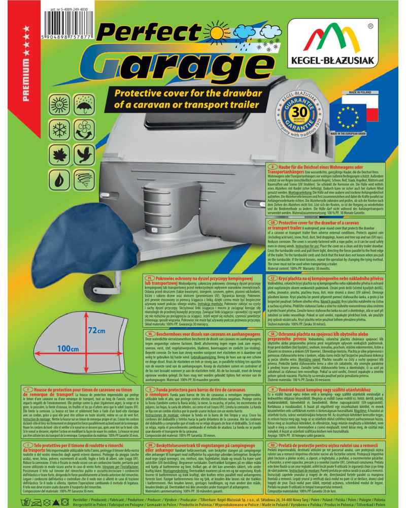 Ez a vízálló huzat egész évben védi a kemping- vagy szállító utánfutók vonórudját a kedvezőtlen időjárási tényezőktől. Megóvja az esőtől (savas esőtől is), hótól, dértől, portól, madárürüléktől, falevelektől és fanedvektől, illetve napsugárzástól (UV-sugárzástól). Korlátozza a rozsdásodást. A huzat jól rögzíthető egy összehúzható kötéllel, és ennek köszönhetően erős széllökések esetén is biztonságosan használható.