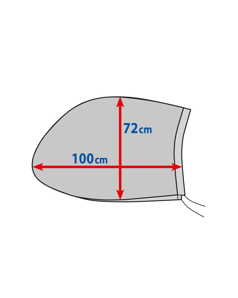 Rögzítése:A huzatot az utánfutó tiszta, száraz vontatórúdjára helyezze fel. Az összehúzó köteleket keresztbe tegye, és erősen húzza meg úgy, hogy az az utánfutó elülső széléhez képest párhuzamosan húzza. Kösse meg az összehúzó köteleket, és ellenőrizze, hogy miután meghúzta a köteleket, nem lazult-e meg a csomó. Amennyiben a csomó meglazult, ismét kösse meg, de ezúttal más irányból. A huzat az utánfutó szállítása közben nem használható.