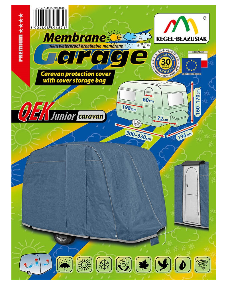 Új, membránból készült MEMBRANE GARAGE védőhuzat a népszerű MOBILE GARAGE ponyvák jobb verziója. Teljes mértékben páraáteresztő, sík, puha tapintású alsó résszel. A membrán, melyből a MEMBRANE GARAGE huzat készül, 20%-kal vastagabb, ugyanakkor puhább, mint a MOBILE GARAGE membránja. Az anyag négy rétegből készült, páraáteresztő, de vízhatlan membránnal rendelkezik, minek köszönhetően a huzat teljes mértékben vízhatlan, ugyanakkor átereszti a párát, mely a huzat alól jön ki. A leparkolt kocsi, melyen a MEMBRANE GARAGE huzat van, száraz marad, a pára pedig elpárolog a huzat membránján keresztül, így védve a kocsit a rozsdásodással szemben. Ezen kívül a huzat védi a kocsit a sérülésektől, a fakulástól, és a lakk és a krómozott elemeket a mattá válástól. Véd az esőtől (savas esőtől is), naptól (UV sugárzástól), portól, madárürüléktől, levelektől és fák levétől, valamint a hótól és dértől. A huzat puha bélése védi a kocsi lakkját a karcolások többségétől. A 30 hónapra szóló garanciának köszönhetően biztos lehet abban, hogy a legmagasabb minőségű terméket vásárolja.
