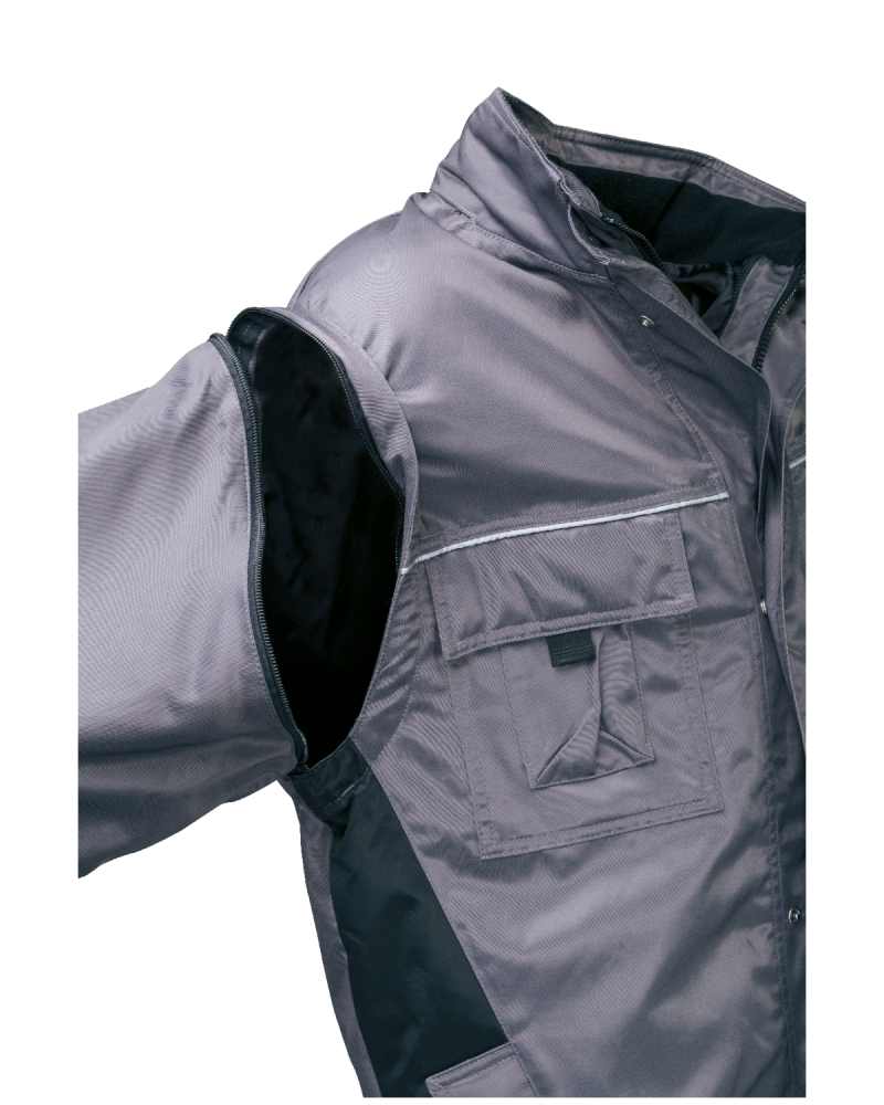 - Rugalmas passzéval ellátott, cipzáras, levehető ujjak, hátul fényvisszaverő elem.