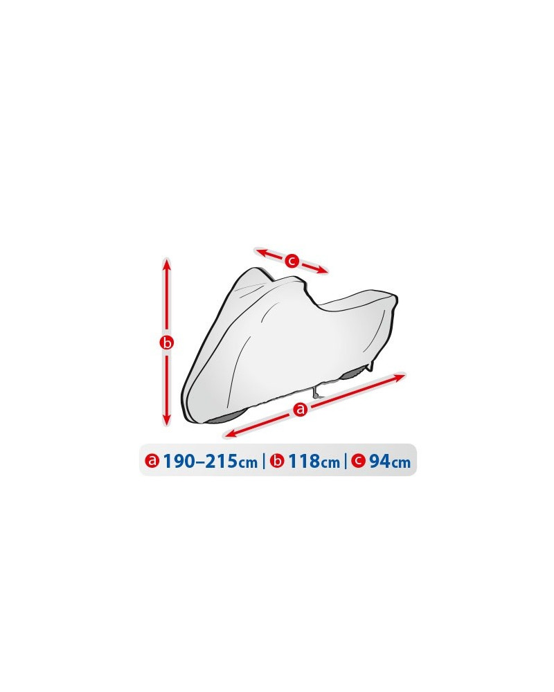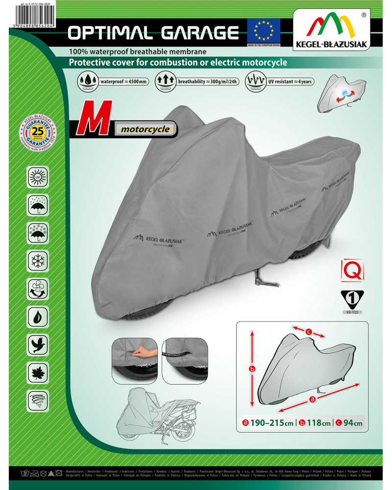 Membrános, vízálló, ugyanakkor páraáteresztő védőhuzat, mely védelmet nyújt a belsőégésű vagy elektromos motorkerékpárjának a káros környezeti hatásokkal szemben. Ez az időjárásálló védőhuzat teljes mértékben páraáteresztő membránból készült. Még erős eső esetén is vízálló, ugyanakkor páraáteresztő, a nedvességet pedig elvezeti a huzat alól. Védelmet nyújt az eső, a hó, a fagy és a napsugarak (káros UV-sugárzás) káros hatásaival szemben, valamint az olyan szennyező anyagokkal szemben is, mint például a por, a madárürülék vagy a fanedvek. Csökkenti a korróziót és a műanyag alkatrészek öregedését, véd a festék és a krómozott alkatrészek kifakulása és elszíneződése ellen. Használható belső égésű motorkerékpár hosszú vagy rövid távú kültéri tárolására, illetve elektromos motorkerékpár rövid távú tárolására. Beltéri használatra is alkalmas. Az összehúzó kötél és a motorkerékpár alatti rögzítőelemek biztosítják, hogy a szél ne tépje le a huzatot. A védőhuzatban lévő nyílásoknak köszönhetően a motorkerékpárt a huzattal együtt rögzítheti, az első keréknél fogva, egy zár vagy lánc segítségével.
