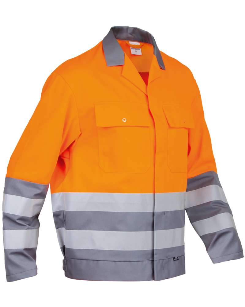 - Dupla fényvisszaverő szalag, szélessége 5 cm a törzs és az ujj alján.