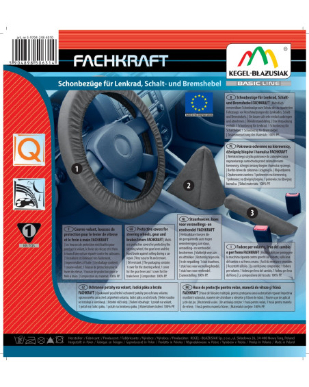 Az általunk ajánlott huzatok nagyon jól beválnak az autós szervizekben, illetve az autószerelőknél. Védik a kormányt, a sebességváltó váltóját, a kéziféket, és egyúttal növelik a szerelő munkájának a komfortját is. Az anyag a belső oldalán puha és finom, aminek köszönhetően elkerülheti a védett elemek karcolását. Nagyon könnyen feltehető – elég csak ráhúzni a kocsi megfelelő részeire. A kormányra való huzatba bevarrtuk a gumikat, melyek segítik az anyag stabil fekvését a kormányon és annak erős tapadását, így elkerülhető a lecsúszás. A huzatok nem foglalnak el sok helyet, ezért könnyen tárolhatók. Környezetbarát és költségkímélő termék – többször használható, hosszú időn keresztül lehet használni. A FACHKRAFT védőhuzat fekete színben készült – nagyon praktikus. A sötét színe miatt a kosz nem látható, a huzat pedig jól néz ki. A huzatot ki lehet mosni, 40 fokos hőmérsékleten. A huzat a legmagasabb elvárásokkal rendelkező ügyfelek kívánalmainak is megfelel.