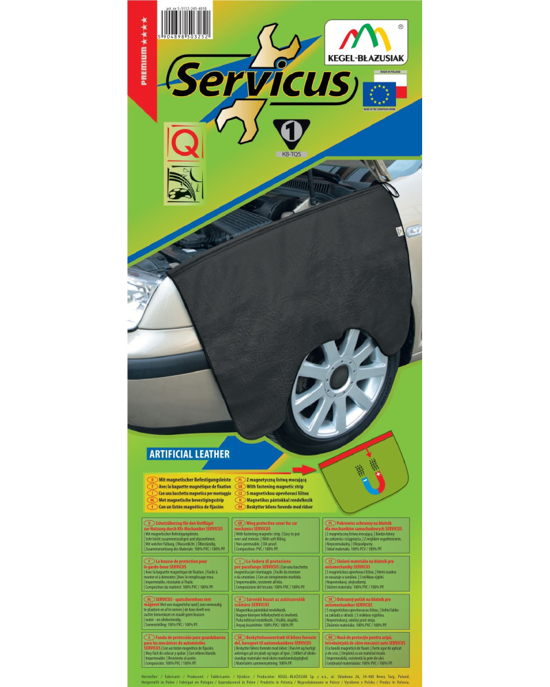 Sárvédőre való SERVICUS védőhuzat – mely új generációjú műbőrből készült – vízálló és olajálló – megbízható védelmet biztosít a kocsi konkrét részeinek. Nagyon tartós szövetből készült, mely különböző sérülésekkel szemben ellenálló, környezetbarát termék, többször használható. Nagyon könnyen feltehető és levehető, könnyen szállítható/tárolható, mivel összehajtás után nem foglal el sok helyet. A termék könnyen tisztítható – a huzat bárminemű elszennyeződéseit elég áttörölni egy nedves, tisztószeres ronggyal. Ha nálunk vásárol huzatokat, biztos lehet abban, hogy a legmagasabb minőséget kapja.