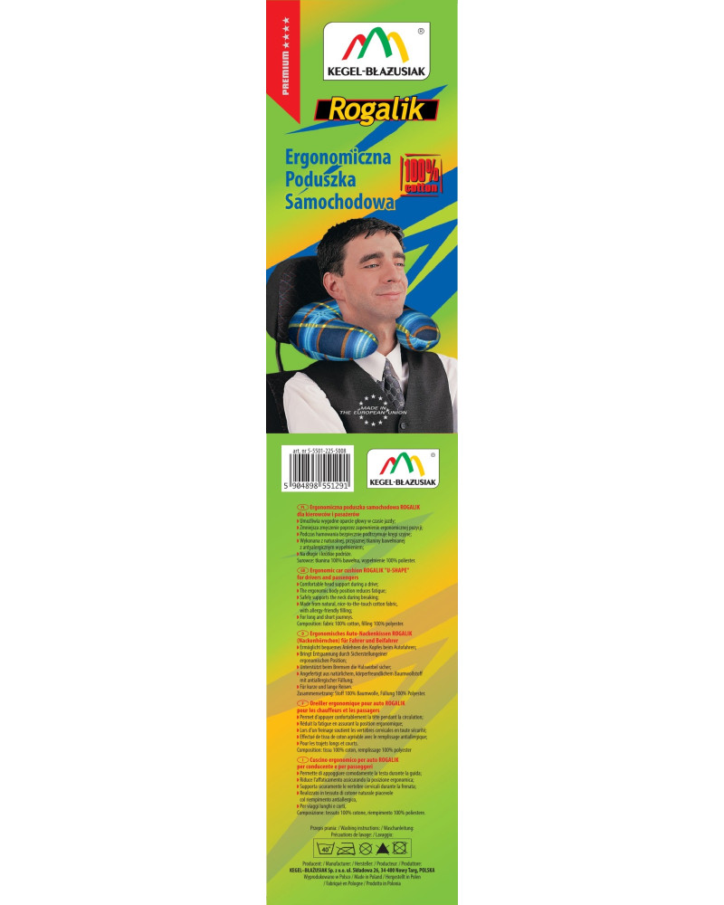 A párnát hosszú és rövid utazás közben is használhatja. Különösen praktikus azok számára, akik hosszú utazás előtt állnak – azoknak, akik az autóbuszokban, vonatokon és repülőkön utaznak. A kivitelezése szakszerű, természetes, a testnek kellemes pamutszövetből készült, a töltése pedig antiallergén, a nyakunkat körbefogva támasztja alá a fejünket. Nyugodtan ráfeküdhetünk, és rátámaszthatjuk a fejünket, így az stabil pozícióban marad. A párna fékezés vagy hirtelen manőverek közben védi a nyakcsigolyákat. Kellemes, nyugodt utazást garantál. A párna színe többségben kék – minden árnyalatában (világoskéktől sötétkékig). A párnát apró narancssárga színű kockás minta díszíti. Nagyon jól néz ki a kocsiban, vidámabbá teszi azt, kontrasztban áll a kárpit általában visszafogottabb színével.