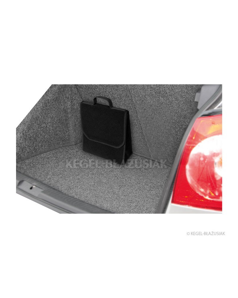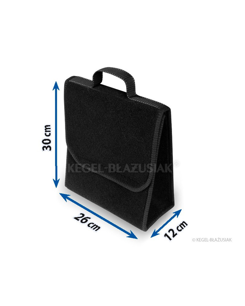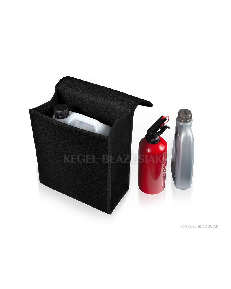 A BASIC LINE sorozatból származó KANGAROO csomagtartóba való táska rendkívül praktikus, és nagy űrtartalmú, vastag, erős szőnyeganyagból készült. Tépőzárakkal rendelkezik – az alján és a hátsó oldalán, minek köszönhetően biztonságosan feltehető bármilyen helyre a csomagtartóban. A táska erős tépőzáras zárral rendelkezik, mely szabályozható. A táskában mindenféle tárgyat lehet tárolni, még a nehezeket is, valamint azokat, melyek éles szélekkel rendelkeznek. Ez lehetővé teszi, hogy elhelyezzük benne a motorolajra való 5 literes tartályt vagy ablaktiszítós üvegeket, tűzoltókészüléket, és egyéb, kocsiban hasznos eszközöket – izzókészletet, kiegészítőket. A táska praktikus, függőleges alakja miatt nem foglal el sok helyet, és a fogantyúnak köszönhetően könnyű áthelyezni. Az ORDNUNG csomagtartóba való táskának köszönhetően összegyűjthetjük az összes, utazás közben hasznos tárgyat egy helyen, valamit védi a csomagtartót a károktól.