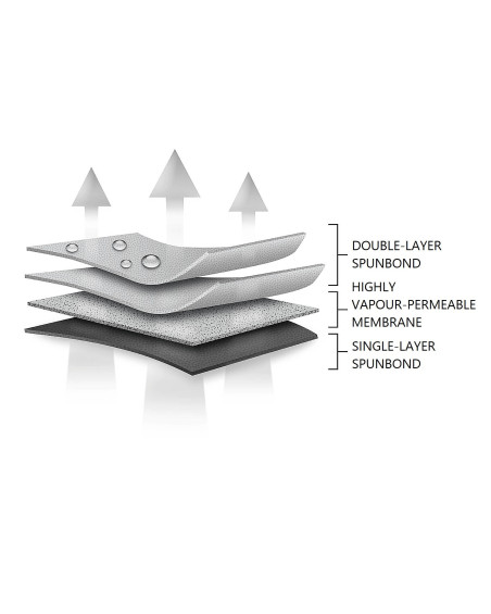 még erős eső esetén is vízálló, ugyanakkor páraáteresztő, így elvezeti a nedvességet a huzat alól