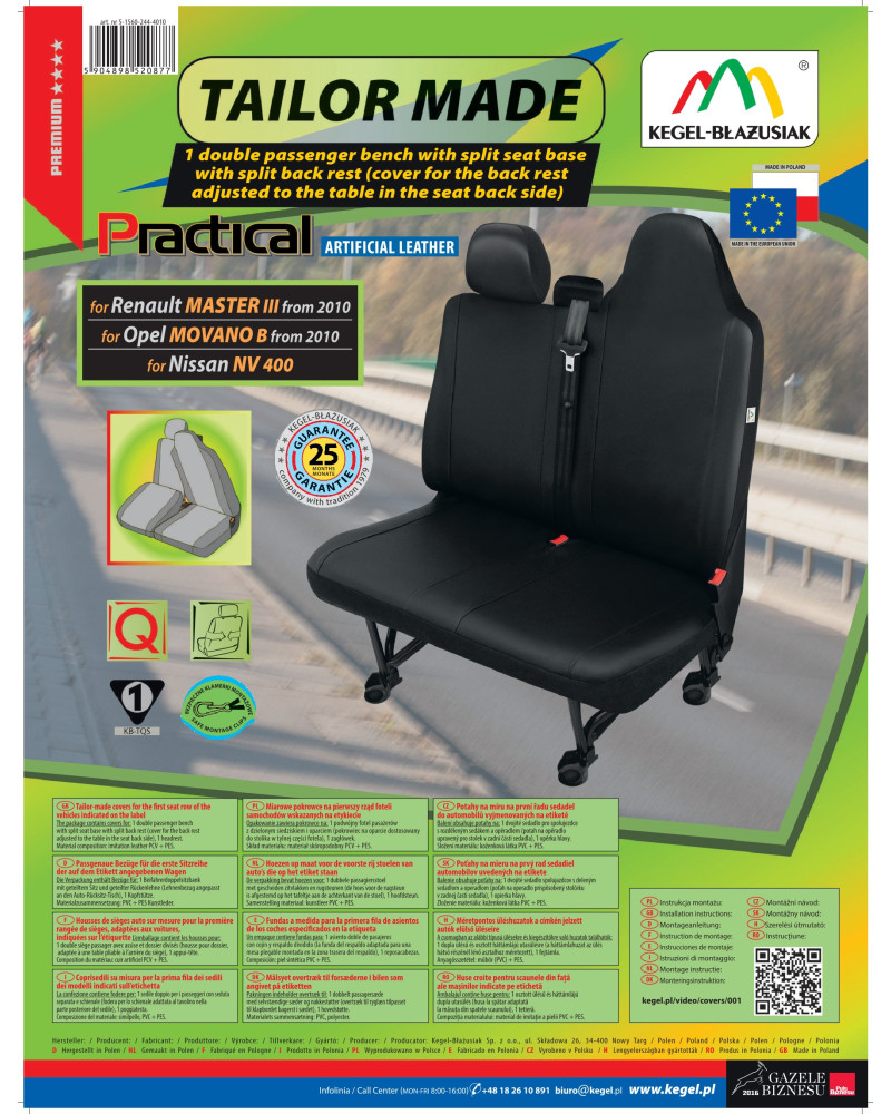 A PRACTICAL méretezett huzat kivételesen tartós, újgerenációs műbőrből készült, ami a legapróbb részletek gondos kivitelezésével az ügyfelek legmagasabb elvárásainak felel meg. A megfelelően felhúzott huzatokat alig lehet elkülöníteni az eredeti, bőrből készült kárpittól, az eredmény pedig nagyon alacsony áron elérhető. A huzat erős, tartós anyagból készült, a megfelelő keretnek köszönhetően jól igazodik az ülésekhez, és jól tapad hozzájuk, így elkerülhető a huzat elcsúszása. A RACTICAL autóhuzatok nagyon jól védik az eredeti kárpitot a koszolódástól és a kopástól, az ízléses , modern stílus pedig pozitív esztétikai benyomást kelt. A huzatot nagyon könnyű tiszítani és feltenni. Alapos kivitelezés garantálja a magas minőséget és a hosszú ideig tartó használatot. A vízhatlan, nem koszolódó és kivételesen tartós anyag biztosítja a praktikus használatot. Az ajánlatunk a szállításra használt kocsik és kisbuszok részére készült, azon vezetők számára, akik szeretnék megvédeni a kocsik belsejét, és elegánsabbá is tennék azt. A fekete, univerzális színek tökéletesen igazodnak a kocsik belsejéhez. A huzatok nagyon jól néznek ki mindegyik kocsi belsejében. Kivételesen elegánsak, ezért használatukkal minden belső tér elegánsabbá válik.