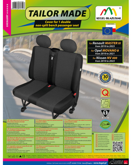 Az ARES TAILOR MADE huzatok – kényelmesek és biztonságos autóhuzatok, melyeket a szállítással foglalkozó kocsik és kisbuszok tulajdonosaira gondolván terveztünk meg – szakszerű kivitelezésűek, lángra nehezen kapható, magas minőségű jaquard szövetből készültek. Pontosan ilyen szövetből készülnek a kocsigyáraknak előállított fotelkárpitok. Gondos, pontos kivitelezésűek. A megfelelő szerkezetüknek és a megfelelő méreteknek köszönhetően nagyon jól illenek a konkrét kocsik üléseihez. Mivel a belső oldalukat PUR habbal lamináltunk, pontosan illeszkednek a fotelekhez. Az ARES huzatok jól védik a kárpitot az elhasználódástól, kosztól és károktól, valamint nagyon jól néznek ki a kocsi belsejében. A huzatok teljes egészében nagyon erős, tartós és vastag jaquard szövetből készültek. Az anyag fekete színű – a fekete szín és az elegáns szürke színű minta tökéletesen illik minden kocsi belső teréhez. A 25 hónapra szóló garanciának köszönhetően biztos lehet abban, hogy a legmagasabb minőségű terméket vásárolja.