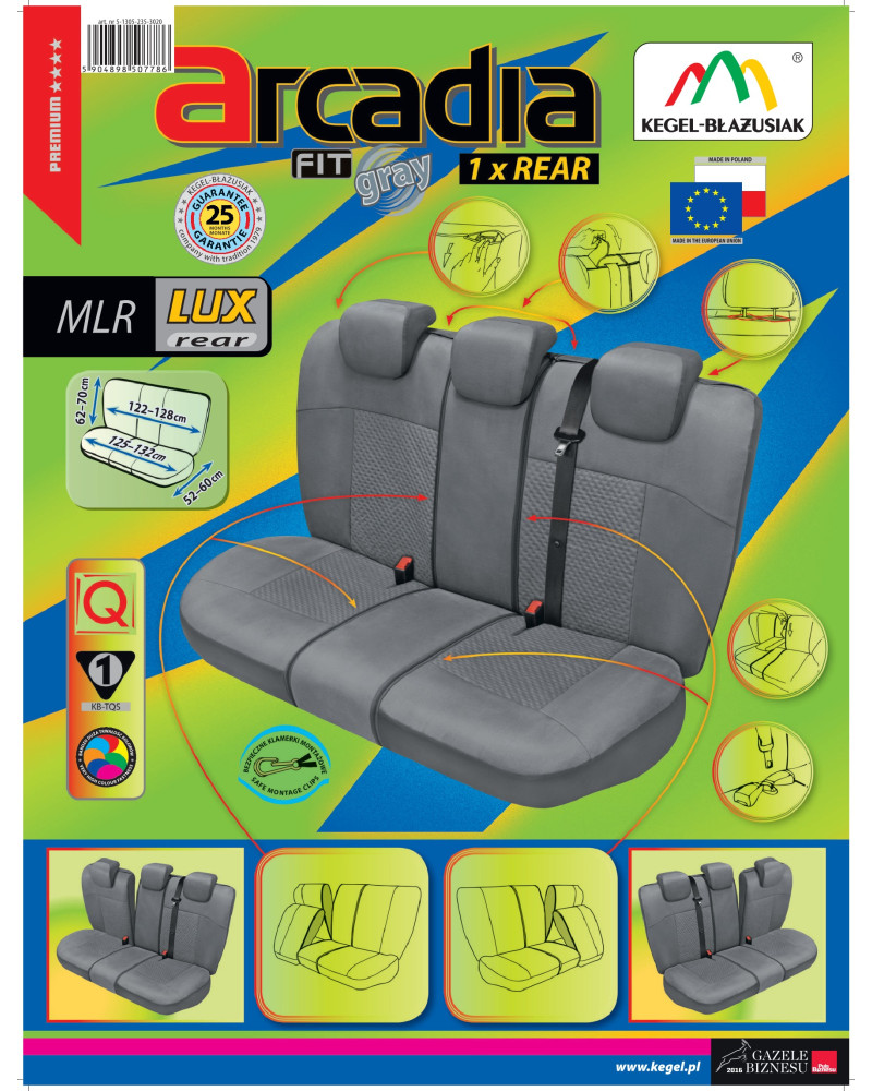Az ARCADIA huzatok nagyon elegáns és ízléses huzatok személygépkocsik számára, lenyűgöző hatásúak. Teljes egészében magas minőségű Alacntara típusú velúrbőrből készültek, galambszürke színben, a kinézetük igazán megnyerő, eredeti. Ezen kívül nagyon erősek és tartósak – a kárpitanyagoknak szóló legmagasabb tartósságra vonatkozó normáknak felelnek meg. Az oldalsó részekhez használt anyag PUR habból készült laminációval rendelkezik, melynek köszönhetően stabilabban tapadnak a fotelhez. A huzatok belső részében lévő anyagot ultrahanggal kapcsoltuk össze bolyhos szövettel, melyre egy finom mintát nyomtattunk. Az ajánlatukban lévő Arcadia huzatokat praktikus és elegáns szürke színben gyártjuk. A színek visszafogottak, így tökéletesen passzolnak mindegyik kocsihoz. A belső részében lévő apró minta, az anyag magas minősége és a szín stílusossá és elegánssá teszi a belső teret. Az Arcadia huzatok élettartama hosszú, kopásállóak és könnyen tisztíthatók. Ezen kívül az ár-érték/ minőség arány nagyon jó, mivel annak ellenére, hogy tényleg nagyon jó minőségűek, elérhető áron kínáljuk őket. A 25 hónapra szóló garanciának köszönhetően biztos lehet abban, hogy a legmagasabb minőségű terméket vásárolja.