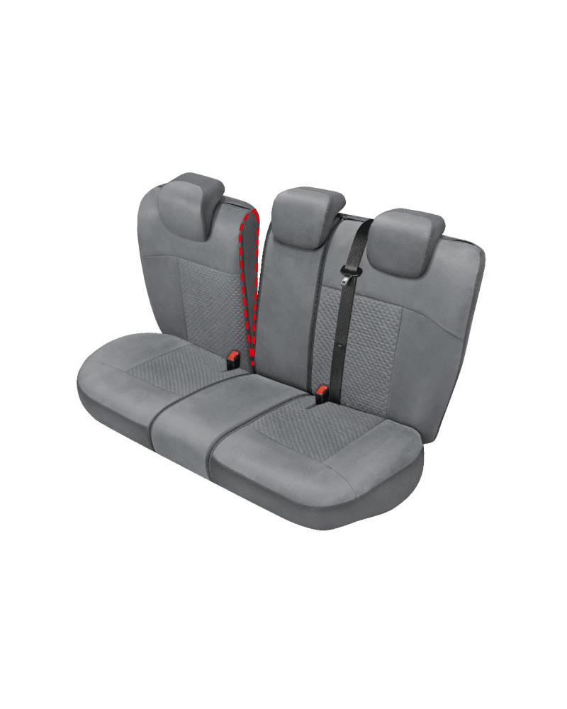 3. Tedd fel a huzatot a háttámlára úgy, hogy a biztonsági öv alatt helyezed fel (ki kell nyitni a huzat rövid cipzárját)