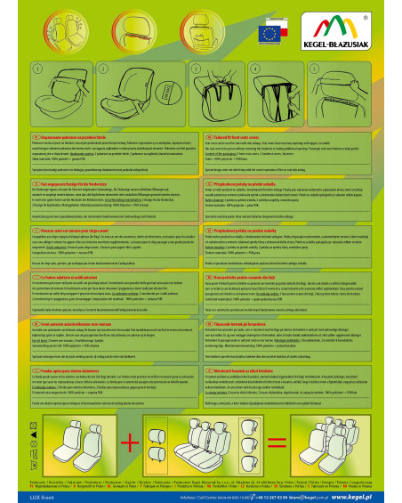 Az elülső ülésekre és a hátsó díványra való huzatokat külön csomagolásban adjuk el. Azonban az egész készlet is megvehető. Önöké a választás. Ennek köszönhetően kiválaszthatják, hogy egyből megveszik az egész készletet vagy csak az elülső/hátsó ülésekre való huzatokat, attól függően, mit szeretnének jobban. Mivel a gyártást egészében ismételjük, bármikor összeállíthatja a készletet, és nem kell attól félnie, hogy az egyes gyártási sorok különböző színűek lesznek, illetve különböző anyagok felhasználásával készülnek.
