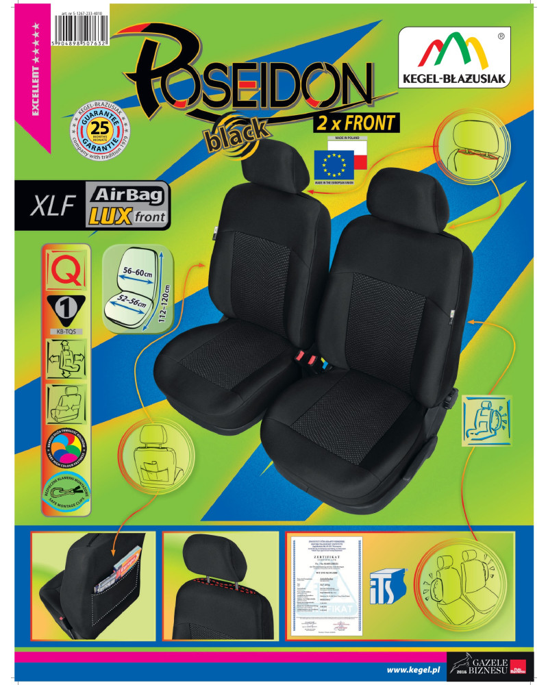 A POSEIDON huzatok nagyon jól illeszkedő autós huzatok, melyek a kocsik konkrét modelljeihez készültek, így nagyon jól illeszkednek az ülésekhez, figyelembe veszik a fotelek legapróbb részleteit (könyöktartó, fejtámla). A Poseidon huzatok megkülönböztető jellemzője az, hogy nagy előnyük, hogy a könyöktartó részén kinyitható zárral rendelkeznek, a sofőr ülésének jobb és bal oldalán, aminek köszönhetően fel lehet tenni őket a sofőr ülésére, mely könyöktartóval rendelkezik, akár a bal akár a jobb oldalán (angol verzió). A kárpitanyag, melyből készültek a huzatok, nehezen lángra kapó, jacquard szövet – nagyon erős, tartós és ellenálló. A huzatok nagyon jól védik a kárpit anyagát mindenféle szennyeződésektől és a legtöbb károsodástól. Az elegáns, klasszikus színek nagyon jól néznek ki mindegyik kocsiban. Ha fel szeretné frissíteni a kocsi belső terét, elegánsabbá tenné, akkor megtalálta a megfelelő terméket. Nagyon sok ügyfél megbízott bennünk! Legyen Ön a következő! A 25 hónapra szóló garanciának köszönhetően biztos lehet abban, hogy a legmagasabb minőségű terméket vásárolja.