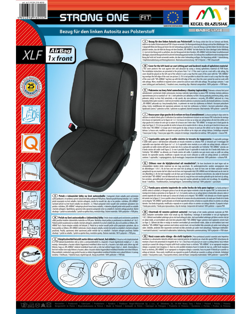 A huzat rögzítésének módját az 1.-5. ábra mutatja. Amennyiben a huzatot oldalsó légpárnával rendelkező ülésre teszi fel, a huzatot a bal oldali autós ülésre úgy kell feltenni, hogy az „SRS-AIRBAG” címkével rendelkező huzat széle az ülés bal szélénél legyen (lásd a 2. ábrát). Amennyiben a fent leírt módon nem tudja feltenni a huzatot, akkor a huzatot oldalsó légpárnákkal rendelkező fotelekre nem lehet felhúzni. Elhasználódott, módosított vagy javított huzatot az oldalsó légpárnákkal rendelkező fotelekre nem szabad feltenni.