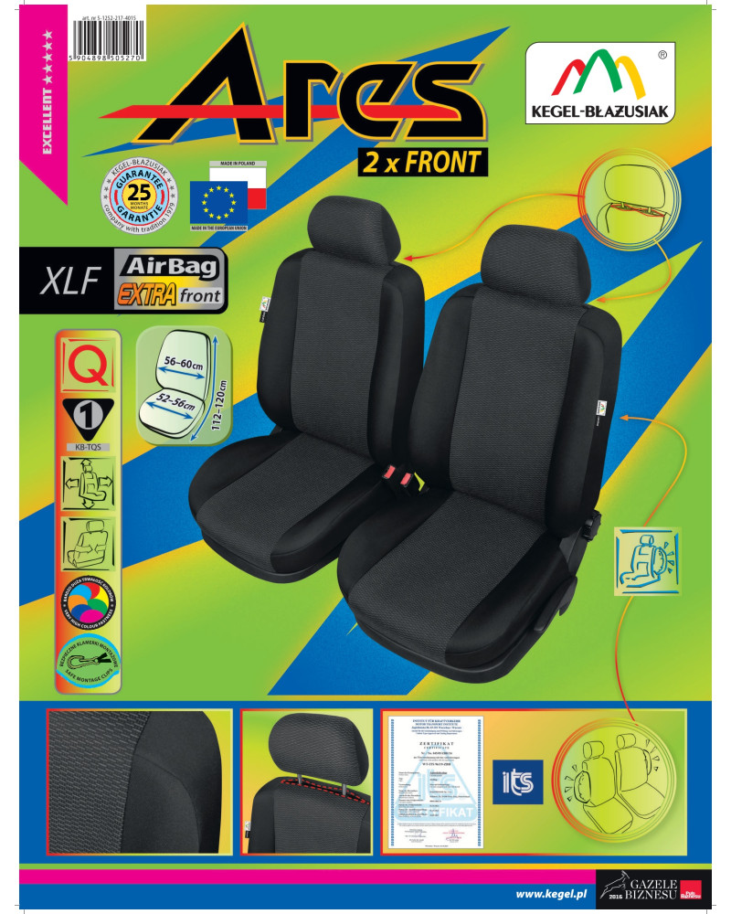 Az ARES huzatok magas minőségű jacquard anyagból készültek, ami nagyon alapos kivitelezéssel, ügyelve a legapróbb részletekre, kielégíti az ügyfelek legmagasabb elvárásait is. A megfelelő, tágas szerkezet miatt jól illeszkednek az ülésekhez. A huzatok belső része nehezen lángra kapó PUR habból készült laminációval rendelkezik, mely megakadályozza a huzatok elcsúszását. Az Ares huzatok megfelelnek a legmagasabb tartóssági és biztonsági normáknak. A professzionális, magas minőségű anyagok használatával való kivitelezés pedig garantálja a hosszú ideig tartó használatot. Az ajánlat a személygépkocsik tulajdonosainak szól, akik gondoskodni szeretnének a kocsijuk belső teréről, fel szeretnék frissíteni vagy vonzóbbá tennék azt. Az Ares autóhuzatok nagyon jól védik a kocsi eredeti kárpitját a kopástól és károsodásról, az ízléses, klasszikus stílus pedig tökéletesen passzol mindegyik kocsi belsejéhez. Az anyag tökéletesen tapad a fotelekhez, helyettesítve az eredeti kárpitot. Pontosan ilyen anyagokból készülnek az új kocsik kárpitjai az autógyárakban. A 25 hónapra szóló garanciának köszönhetően biztos lehet abban, hogy a legmagasabb minőségű terméket vásárolja.