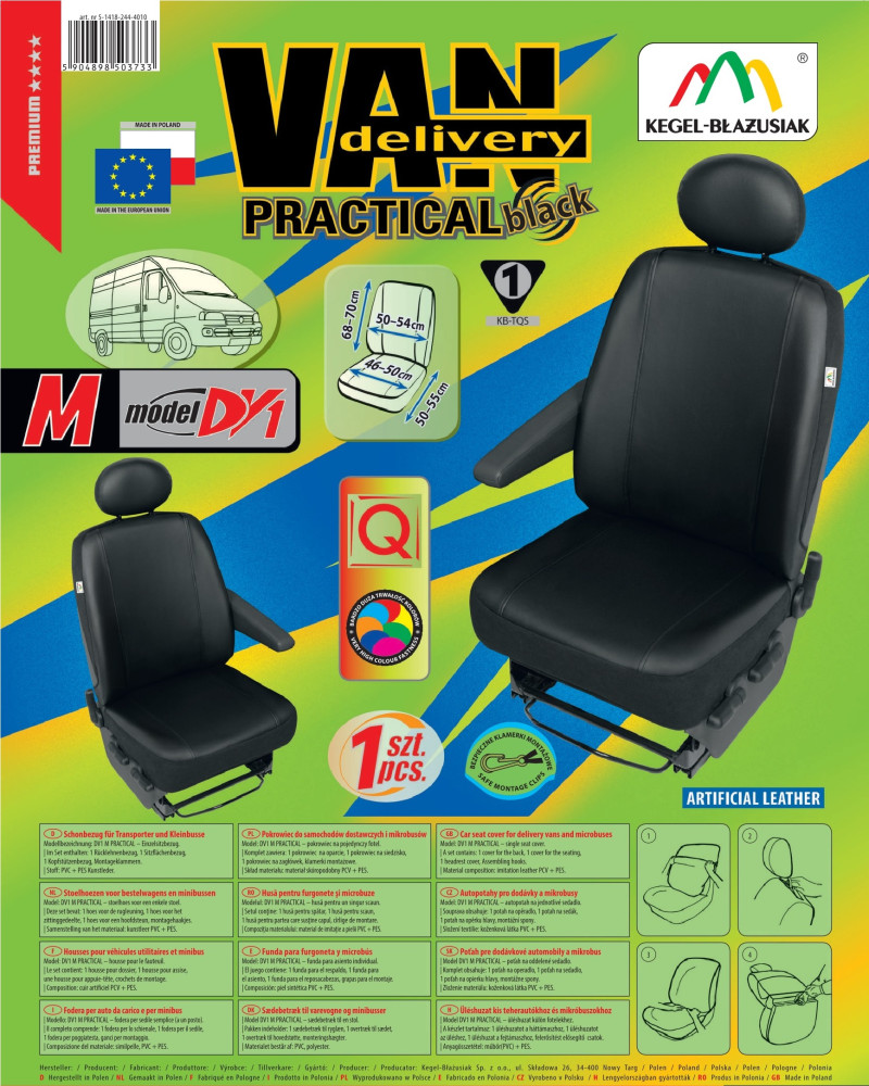 A PRACTICAL méretezett huzat kivételesen tartós, újgerenációs műbőrből készült, ami a legapróbb részletek gondos kivitelezésével az ügyfelek legmagasabb elvárásainak felel meg. A megfelelően felhúzott huzatokat alig lehet elkülöníteni az eredeti, bőrből készült kárpittól, az eredmény pedig nagyon alacsony áron elérhető. A huzat erős, tartós anyagból készült, a megfelelő keretnek köszönhetően jól igazodik az ülésekhez, és jól tapad hozzájuk, így elkerülhető a huzat elcsúszása. A RACTICAL autóhuzatok nagyon jól védik az eredeti kárpitot a koszolódástól és a kopástól, az ízléses , modern stílus pedig pozitív esztétikai benyomást kelt. A huzatot nagyon könnyű tiszítani és feltenni. Alapos kivitelezés garantálja a magas minőséget és a hosszú ideig tartó használatot. A vízhatlan, nem koszolódó és kivételesen tartós anyag biztosítja a praktikus használatot. Az ajánlatunk a szállításra használt kocsik és kisbuszok részére készült, azon vezetők számára, akik szeretnék megvédeni a kocsik belsejét, és elegánsabbá is tennék azt. A fekete, univerzális színek tökéletesen igazodnak a kocsik belsejéhez. A huzatok nagyon jól néznek ki mindegyik kocsi belsejében. Kivételesen elegánsak, ezért használatukkal minden belső tér elegánsabbá válik.
