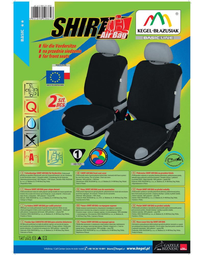 A SHIRT AIRBAG II huzatok nagyon jól illeszkednek mindegyik kocsi belsejéhez, és nagyon jól harmonizál a fotelek eredeti kárpitjával. A huzatok fel fogják frissíteni a kárpitot, és a belső térnek egy kivételes hangulatot adnak – az autó elegánssá és ízlésessé válik. A PÓLÓ huzatok megfelelnek minden használati szabványnak, mivel jól védik a kocsi eredeti kárpitját a kopástól, a károktól és a szennyeződésektől is. Az ajánlat a személygépkocsi-tulajdonosoknak készült, akik gondoskodni akarnak a kocsijuk belső teréről – védeni fogja az eredeti kárpitot, és egy kellemes kinézetű termékkel egészíti ki a kocsi belső terét.