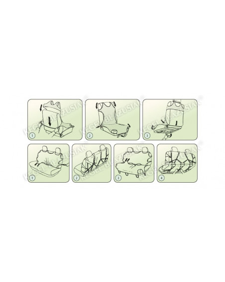 A SHIRT COTTON huzatok elengedethetlen, megfelelő méretű nyílásokkal rendelkeznek, melyek lehetővé teszik azt, hogy feltegyük, anélkül, hogy le kellene venni a fejtámlákat vagy plusz lyukakat kellene kialakítani. A készletben műanyag csatok találhatók, az anyagba pedig rögzítőelemeket varrtunk be, mindez a képes használati utasítás segítségével nagyon könnyű felszerelést tesz lehetővé.