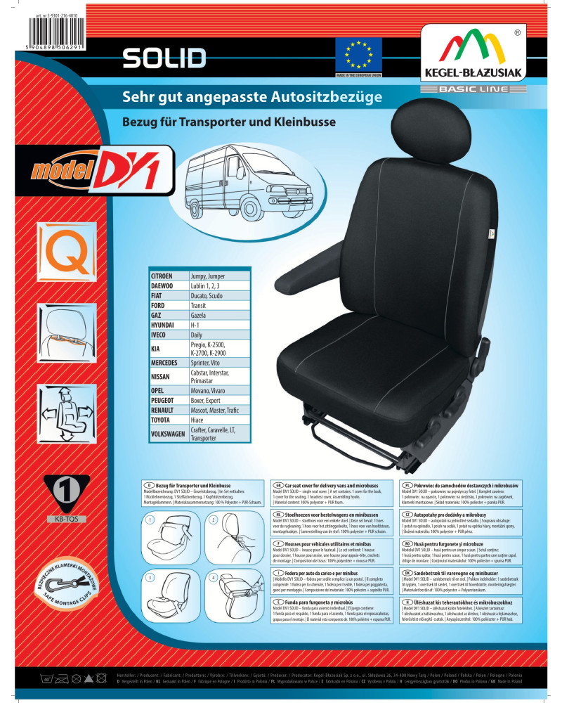 Az univerzális, méretezett SOLID huzatok az Auto Schmidt sorozatból – tartósak, erősek és praktikusak, melyeket szállítókocsikba és kisbuszokba szántunk. Azon személyek számára készítettük, akik védeni fogják a kocsijuknak a kárpitját a szennyeződésektől és károktól, de azok számára is, aki frissíteni és attraktívabbá tennék a kocsi belsejét. Az innovatív szerkezetüknek köszönhetően nagyon jól illeszkednek a fotelekhez a szállítókocsikban. Erős, kopással szemben ellenálló, szakadással és elszíneződéssel szemben ellenálló magas minőségű anyagból készültek. Borostyán/fekete jaquard színű szövet tökéletesen igazodik mindegyik kocsi belsejéhez. Amikor nálunk vásárol, biztos lehet abban, hogy hosszú időn keresztül használható terméket vásárol.