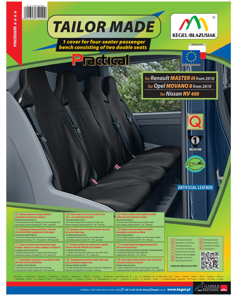 A PRACTICAL TAILOR MADE huzatok új generációjú, erős, tartós és vízhatlan műbőrből készültek, elegánsabbá teszik a kocsija belsejét, és védeni fogják a kocsija kárpitját a szennyeződéstől és a károsodásoktól. A konkrét típusú kocsikhoz készült huzatok megfelelő, tágas szerkezetük miatt jól illeszkednek az ülésekhez. A huzatok hátsó része PUR habból készült laminációval rendelkezik, melyet nagymértékű tapadás jellemez. Egy ilyen konstrukciónak köszönhetően a huzatok stabilan illeszkednek a fotelekhez, és jól komponálnak velük. A Practical autóhuzatok nagyon jól védik az autó eredeti kárpitját a kopástól és a károsodástól, ízléses és modern stílusuk pedig pozitív esztétikai hatást kelt. A vízhatlan, nem piszkolódó és különösen tartós anyag miatt nagyon praktikusak. A huzatok mindenféle szennyeződései nagyon jól tisztíthatóak – elég vizes ronggyal áttörölni. Az ajánlat a személygépkocsi tulajdonosainak szól, akik gondoskodni szeretnének a kocsijuk belső teréről, fel szeretnék azt frissíteni, vagy attraktívabbá tennék. A klasszikus színek tökéletesen illeszkednek mindegyik gépjármű belsejéhez. Alapos kidolgozásuk pedig magas minőséget és hosszú használatot eredményez.