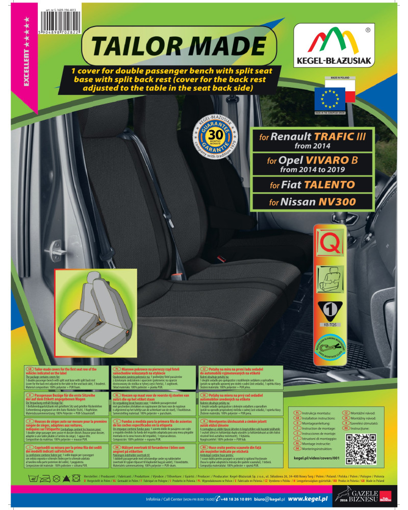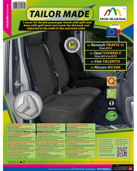 Az Tailor Made huzatok magas minőségű jacquard anyagból készültek, ami nagyon alapos kivitelezéssel, ügyelve a legapróbb részletekre, kielégíti az ügyfelek legmagasabb elvárásait is. A megfelelő, tágas szerkezet miatt jól illeszkednek az ülésekhez. A huzatok belső része nehezen lángra kapó PUR habból készült laminációval rendelkezik, mely megakadályozza a huzatok elcsúszását. Az Ares huzatok megfelelnek a legmagasabb tartóssági és biztonsági normáknak. A professzionális, magas minőségű anyagok használatával való kivitelezés pedig garantálja a hosszú ideig tartó használatot. Az ajánlat a személygépkocsik tulajdonosainak szól, akik gondoskodni szeretnének a kocsijuk belső teréről, fel szeretnék frissíteni vagy vonzóbbá tennék azt. Az Ares autóhuzatok nagyon jól védik a kocsi eredeti kárpitját a kopástól és károsodásról, az ízléses, klasszikus stílus pedig tökéletesen passzol mindegyik kocsi belsejéhez. Az anyag tökéletesen tapad a fotelekhez, helyettesítve az eredeti kárpitot. Pontosan ilyen anyagokból készülnek az új kocsik kárpitjai az autógyárakban. A 30 hónapra szóló garanciának köszönhetően biztos lehet abban, hogy a legmagasabb minőségű terméket vásárolja.