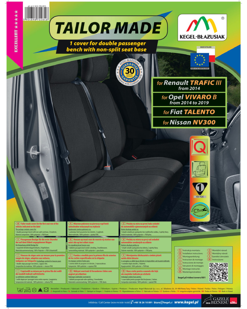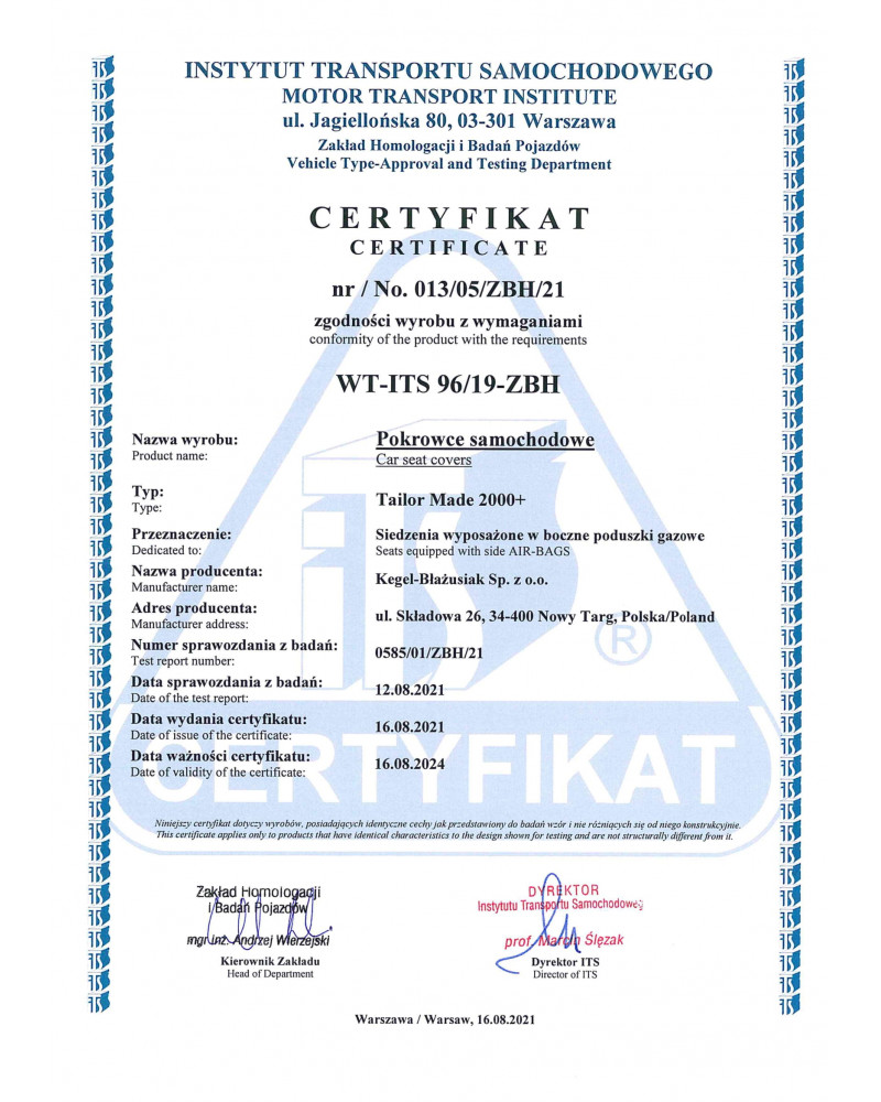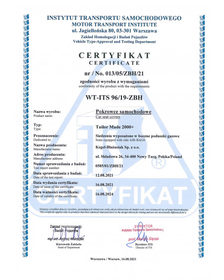 Az Tailor Made huzatok magas minőségű jacquard anyagból készültek, ami nagyon alapos kivitelezéssel, ügyelve a legapróbb részletekre, kielégíti az ügyfelek legmagasabb elvárásait is. A megfelelő, tágas szerkezet miatt jól illeszkednek az ülésekhez. A huzatok belső része nehezen lángra kapó PUR habból készült laminációval rendelkezik, mely megakadályozza a huzatok elcsúszását. Az Ares huzatok megfelelnek a legmagasabb tartóssági és biztonsági normáknak. A professzionális, magas minőségű anyagok használatával való kivitelezés pedig garantálja a hosszú ideig tartó használatot. Az ajánlat a személygépkocsik tulajdonosainak szól, akik gondoskodni szeretnének a kocsijuk belső teréről, fel szeretnék frissíteni vagy vonzóbbá tennék azt. Az Ares autóhuzatok nagyon jól védik a kocsi eredeti kárpitját a kopástól és károsodásról, az ízléses, klasszikus stílus pedig tökéletesen passzol mindegyik kocsi belsejéhez. Az anyag tökéletesen tapad a fotelekhez, helyettesítve az eredeti kárpitot. Pontosan ilyen anyagokból készülnek az új kocsik kárpitjai az autógyárakban. A 30 hónapra szóló garanciának köszönhetően biztos lehet abban, hogy a legmagasabb minőségű terméket vásárolja.