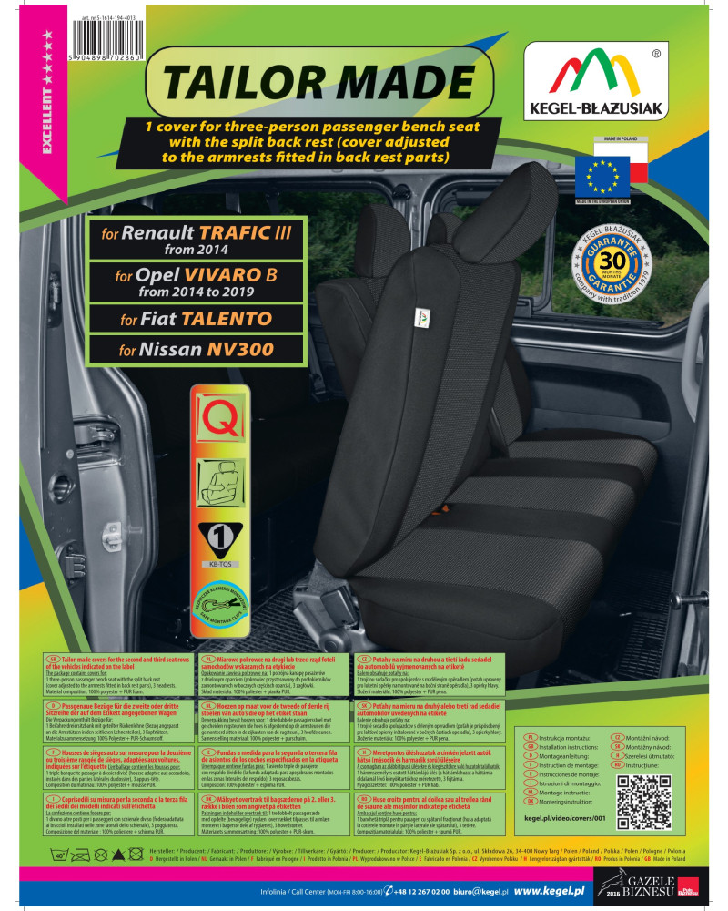 Az Tailor Made huzatok magas minőségű jacquard anyagból készültek, ami nagyon alapos kivitelezéssel, ügyelve a legapróbb részletekre, kielégíti az ügyfelek legmagasabb elvárásait is. A megfelelő, tágas szerkezet miatt jól illeszkednek az ülésekhez. A huzatok belső része nehezen lángra kapó PUR habból készült laminációval rendelkezik, mely megakadályozza a huzatok elcsúszását. Az Ares huzatok megfelelnek a legmagasabb tartóssági és biztonsági normáknak. A professzionális, magas minőségű anyagok használatával való kivitelezés pedig garantálja a hosszú ideig tartó használatot. Az ajánlat a személygépkocsik tulajdonosainak szól, akik gondoskodni szeretnének a kocsijuk belső teréről, fel szeretnék frissíteni vagy vonzóbbá tennék azt. Az Ares autóhuzatok nagyon jól védik a kocsi eredeti kárpitját a kopástól és károsodásról, az ízléses, klasszikus stílus pedig tökéletesen passzol mindegyik kocsi belsejéhez. Az anyag tökéletesen tapad a fotelekhez, helyettesítve az eredeti kárpitot. Pontosan ilyen anyagokból készülnek az új kocsik kárpitjai az autógyárakban. A 30 hónapra szóló garanciának köszönhetően biztos lehet abban, hogy a legmagasabb minőségű terméket vásárolja.