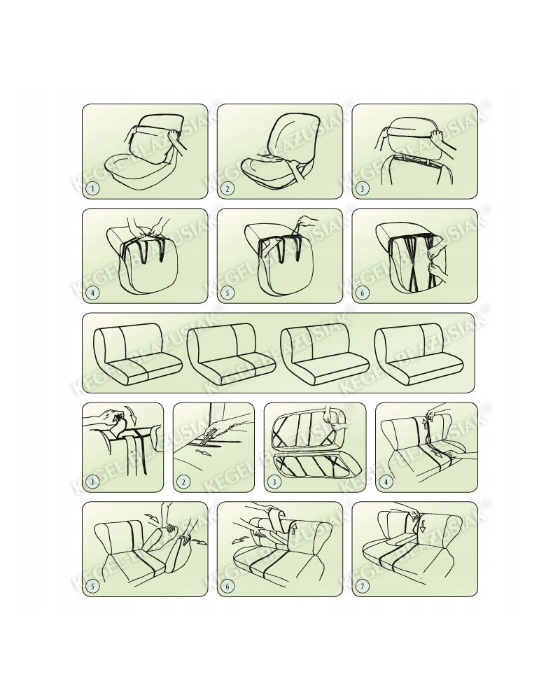1.Válassza ki a megfelelő huzatot (a címkén jelölve) a jobb és a bal oldali üléshez
