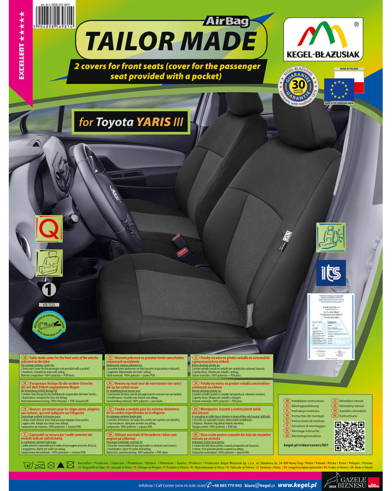 Az terméket a kocsi konkrét modelljéhez ajánljuk, azoknak a kocsitulajdonosoknak, akik ápolni akarják a gépjárművei belső terét, elegánsabbá és sikeresebbé tennék azt. A TAILOR MADE huzatok nagyon jól védik az eredeti kárpitokat a kopástól, az ízléses, klasszikus stílus pedig kellemes esztétikai hatást kelt. Visszafogott színek jellemzik – a fekete szín és a finom szürkés minta a huzat középső részén mindegyik kocsiban tökéletesen fog mutatni. Megfelelő felépítés és a konkrét kocsitípusra való méretezés miatt a huzatok nagyon jól illenek az ülésekre. Az anyag tökéletesen tapad a fotelekhez, és pótolja az eredeti kárpitot.