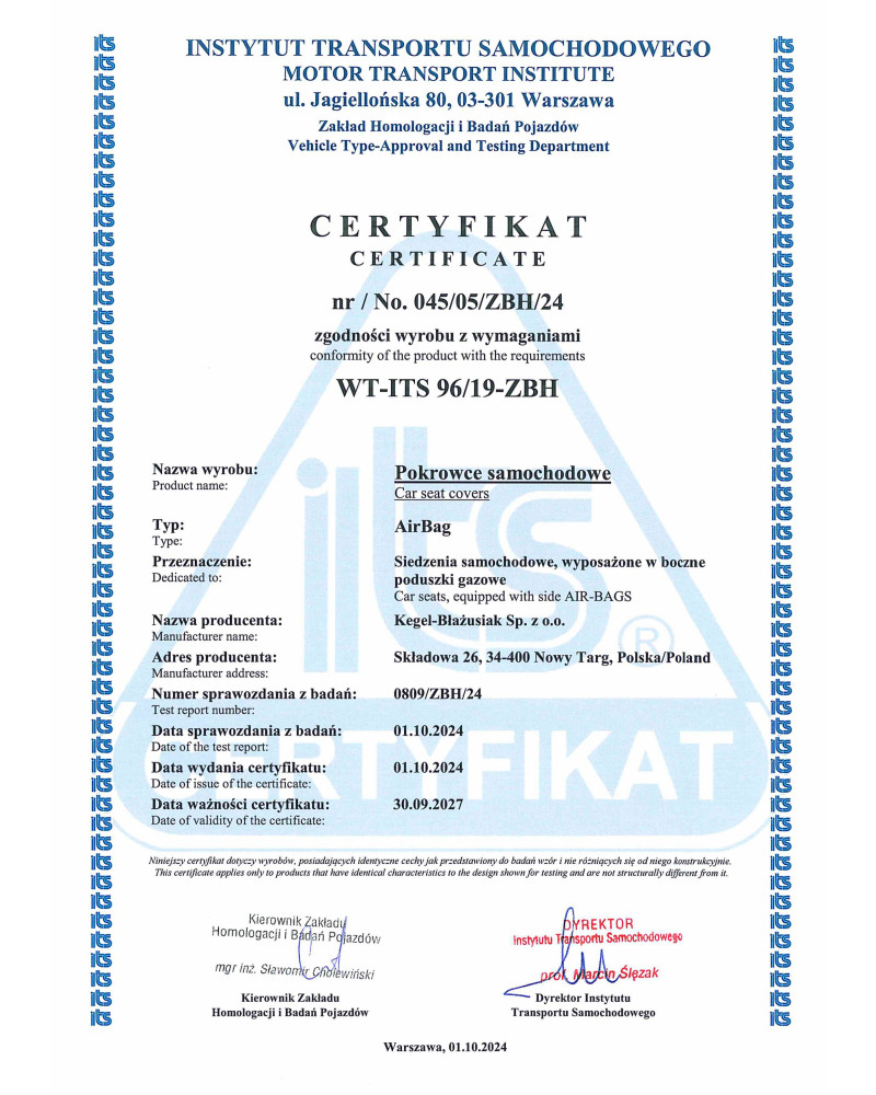 A huzataink biztonságosságát a Közlekedési Intézet által kiállított tanúsítvány és az elvégzett tesztek igazolják