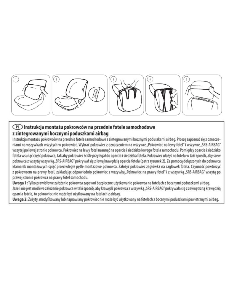 1.Válassza ki a megfelelő huzatot (a címkén jelölve) a jobb és a bal oldali üléshez