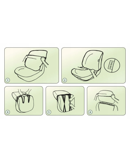 1.Válassza ki a megfelelő huzatot (a címkén jelölve) a jobb és a bal oldali üléshez