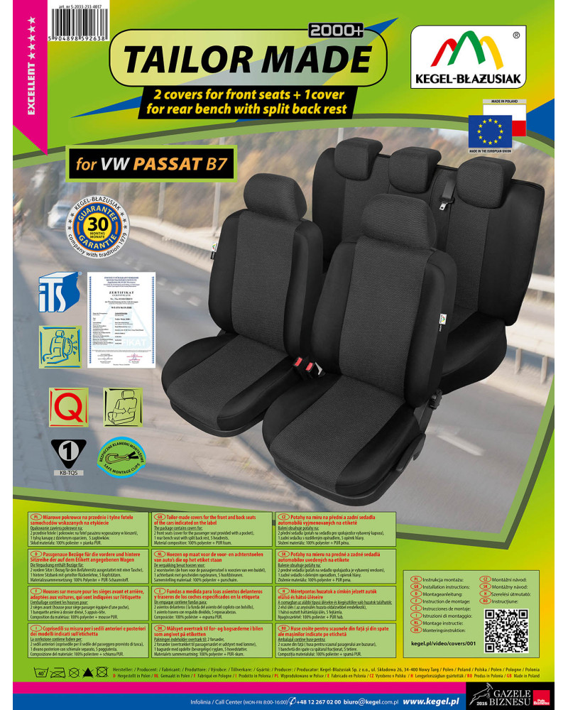 TAILOR MADE elülső ülésekre való huzatok Volkswagen Passat B7 (2010–2014)