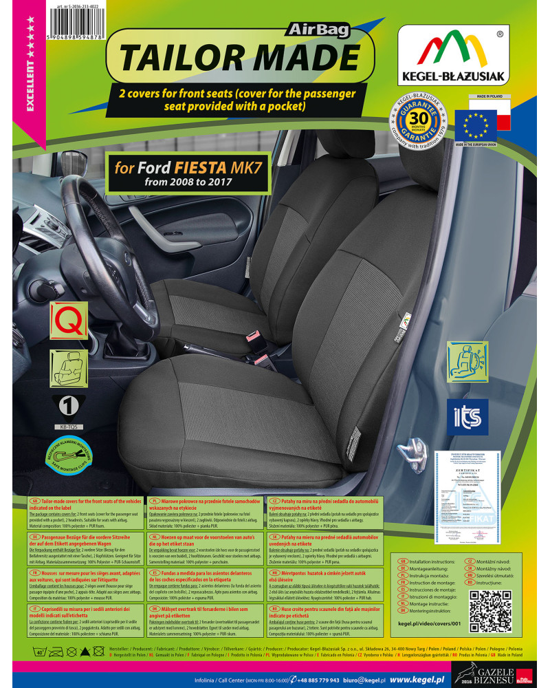 TAILOR MADE elülső ülésekre való huzatok (készlet) Ford Fiesta VII (2008–2017)