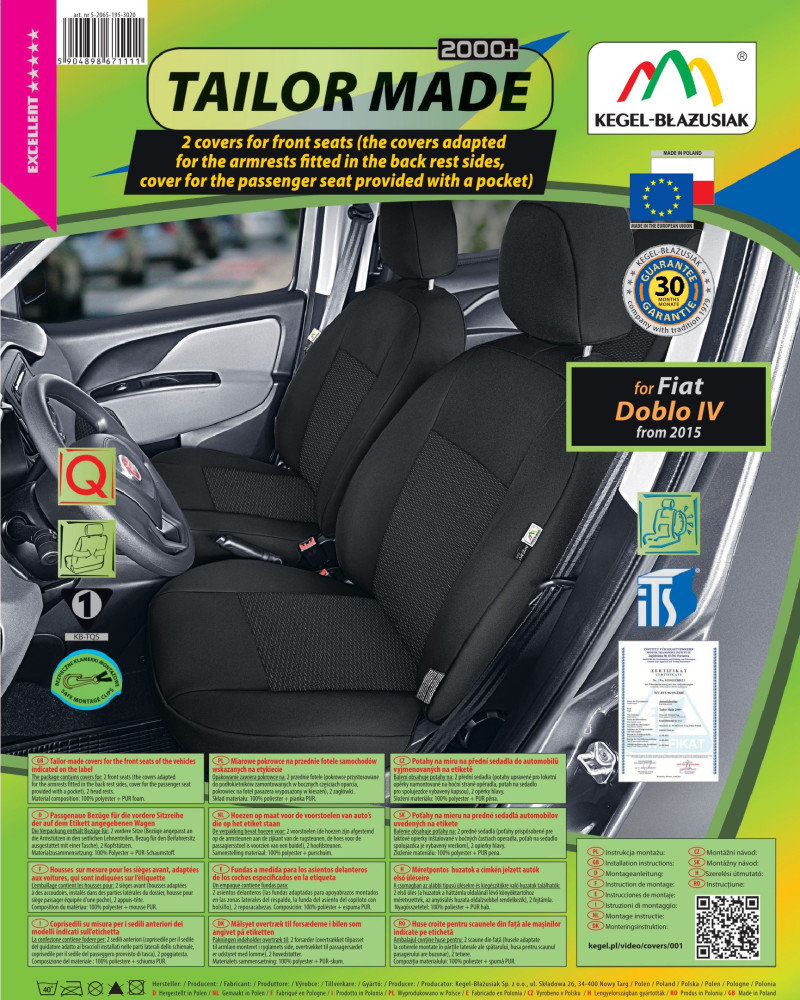 2 első ülés (a huzatok a háttámla oldalánál lévő könyöktartóhoz méretezettek, az anyósülés huzata oldalzsebbel rendelkezik)