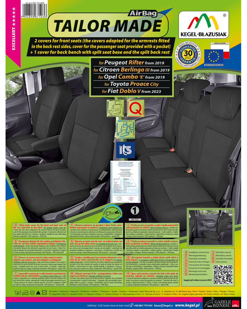Az elülső ülésekre és a hátsó díványra való huzatokat külön csomagolásban adjuk el. Azonban az egész készlet is megvehető. Önöké a választás. Ennek köszönhetően kiválaszthatják, hogy egyből megveszik az egész készletet vagy csak az elülső/hátsó ülésekre való huzatokat, attól függően, mit szeretnének jobban. Mivel a gyártást egészében ismételjük, bármikor összeállíthatja a készletet, és nem kell attól félnie, hogy az egyes gyártási sorok különböző színűek lesznek, illetve különböző anyagok felhasználásával készülnek.