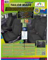 2 első ülés (a huzatok a háttámla oldalánál lévő könyöktartóhoz méretezettek, az anyósülés huzata oldalzsebbel rendelkezik)