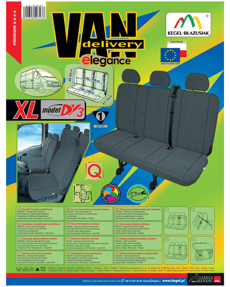 Az ELEGANCE méretezett huzatok nagyon híresek kellemes és puha szövetükről, mely nagyon jól mutat mindegyik kocsiban. A jó kinézet párosul a funkcionalitással, mivel a huzatok nagyon jól védik az eredeti kárpitot bárminemű szennyeződésekkel és a károk többségével szemben. Alapos kivitelezésűek, konkrét modellekhez készültek, ezért tökéletesen igazodnak az ülésekhez. Lángra nehezen kapó, poliuretán habbal lamináltuk őket, mely jól tapad a kárpithoz, és meggátolja a huzatok foteleken való elcsúszását . A szürke, nyugalmat árasztó és egységes színek fel fogják frissíteni a kocsijának a belsejét, és elegánsabbá teszik azt. Magas minőségű anyagokból készültek. Ez az anyag egyfajta kárpitanyag, mely szakadás- és kopásálló. A huzatokat önoltó habbal lamináltuk. Az ELEGANCE autóhuzatokra esztétikus és gondos kivitelezés jellemző, alapos és pontos kivitelezés. A huzatoknak köszönhetően az autó eredeti kárpitja hosszabb időn keresztül jó állapotban marad. A szövet nagyon jól tartja meg a színeket. Alkalmazható a jobb és a bal oldali autós ülésre is. Legyen Ön is egy lenyűgöző kocsinak a tulajdonosa!