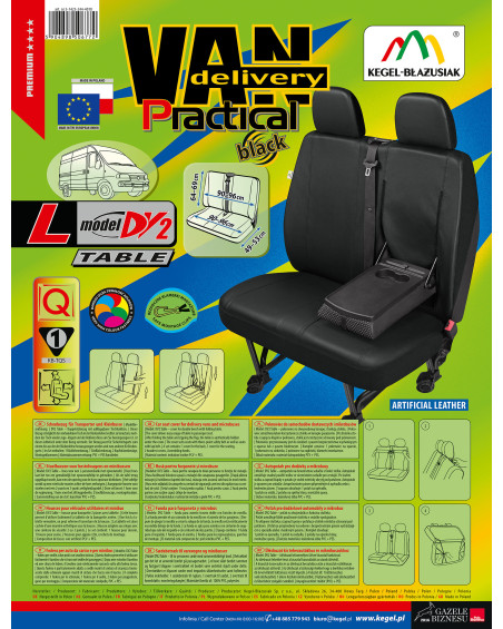 A PRACTICAL méretezett huzat kivételesen tartós, újgerenációs műbőrből készült, ami a legapróbb részletek gondos kivitelezésével az ügyfelek legmagasabb elvárásainak felel meg. A megfelelően felhúzott huzatokat alig lehet elkülöníteni az eredeti, bőrből készült kárpittól, az eredmény pedig nagyon alacsony áron elérhető. A huzat erős, tartós anyagból készült, a megfelelő keretnek köszönhetően jól igazodik az ülésekhez, és jól tapad hozzájuk, így elkerülhető a huzat elcsúszása. A RACTICAL autóhuzatok nagyon jól védik az eredeti kárpitot a koszolódástól és a kopástól, az ízléses , modern stílus pedig pozitív esztétikai benyomást kelt. A huzatot nagyon könnyű tiszítani és feltenni. Alapos kivitelezés garantálja a magas minőséget és a hosszú ideig tartó használatot. A vízhatlan, nem koszolódó és kivételesen tartós anyag biztosítja a praktikus használatot. Az ajánlatunk a szállításra használt kocsik és kisbuszok részére készült, azon vezetők számára, akik szeretnék megvédeni a kocsik belsejét, és elegánsabbá is tennék azt. A fekete, univerzális színek tökéletesen igazodnak a kocsik belsejéhez. A huzatok nagyon jól néznek ki mindegyik kocsi belsejében. Kivételesen elegánsak, ezért használatukkal minden belső tér elegánsabbá válik.